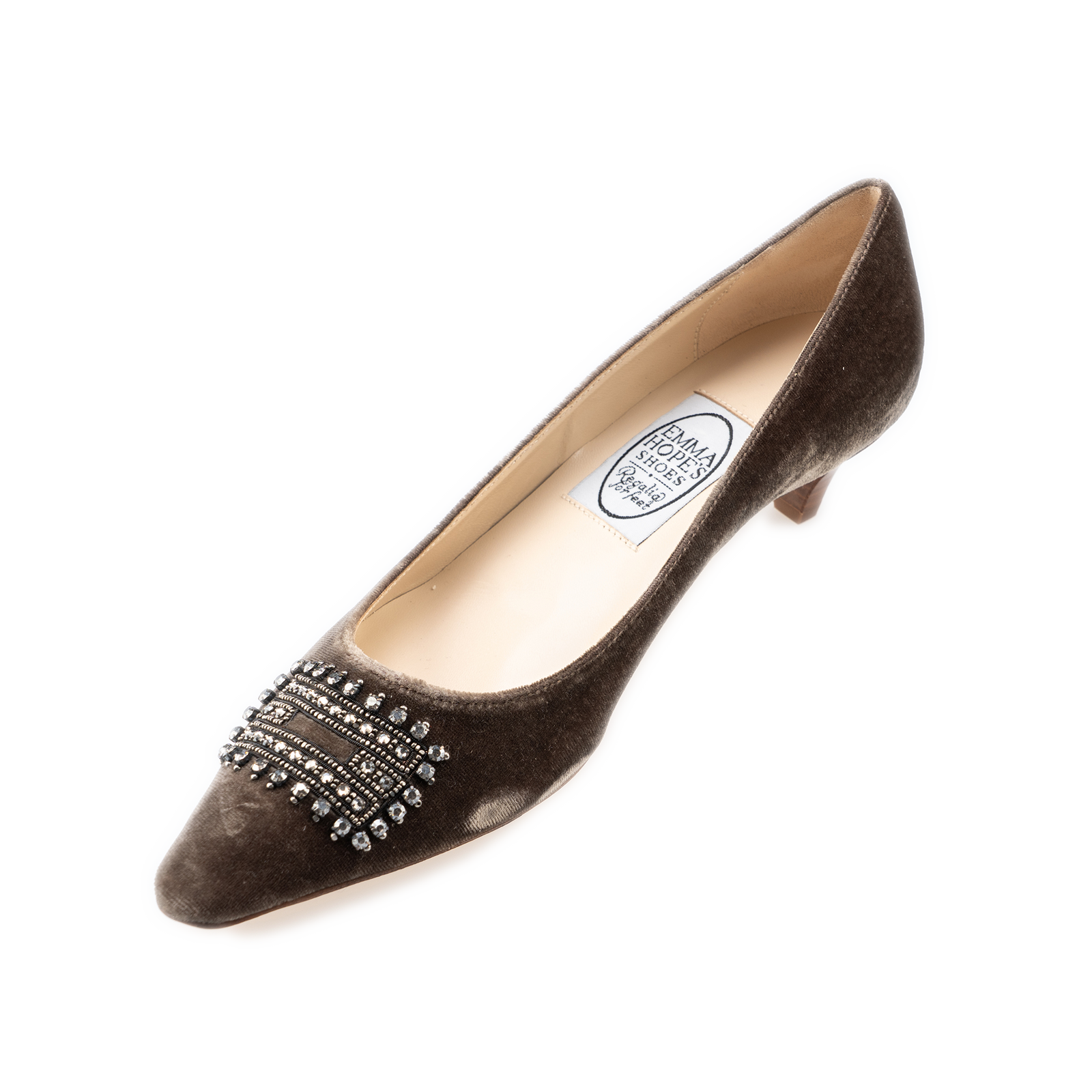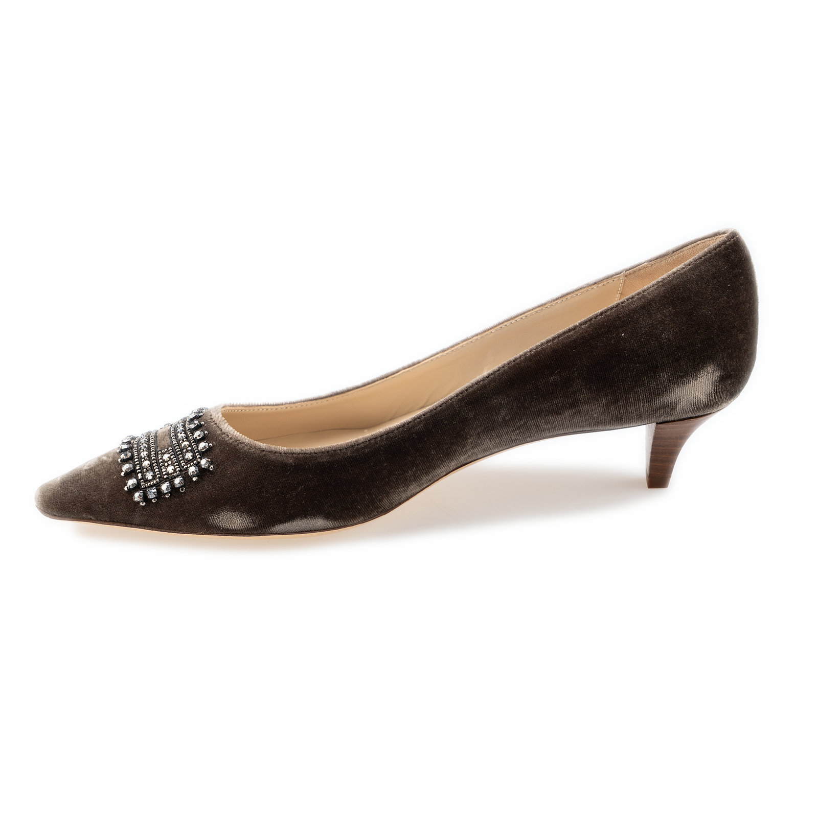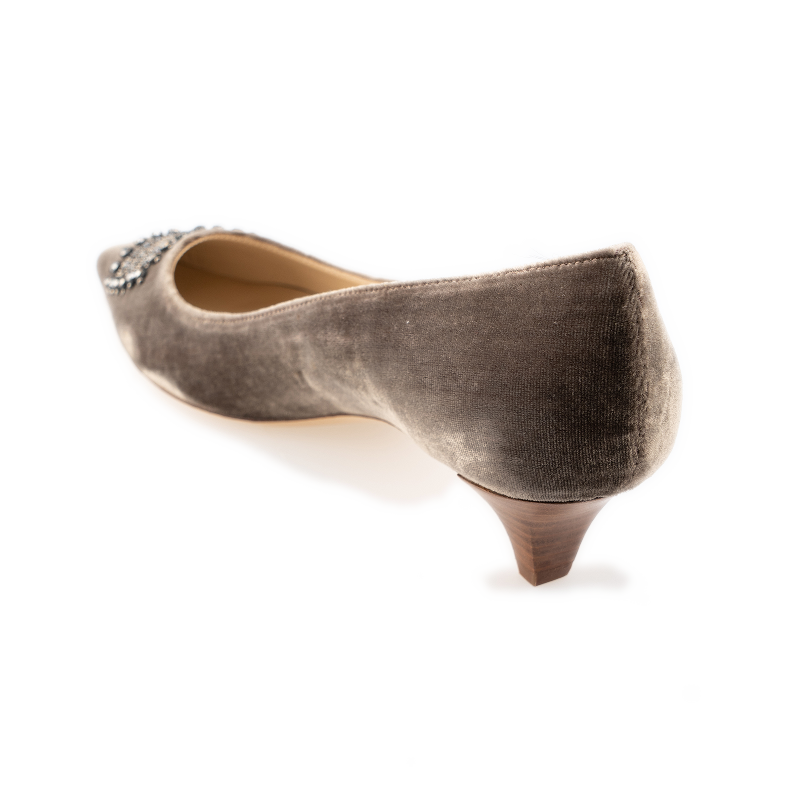 Noce silk velvet, Steel Strass paste-encrusted, embroidery pointy toe Mid Court with a slim stacked 40mm heel.
